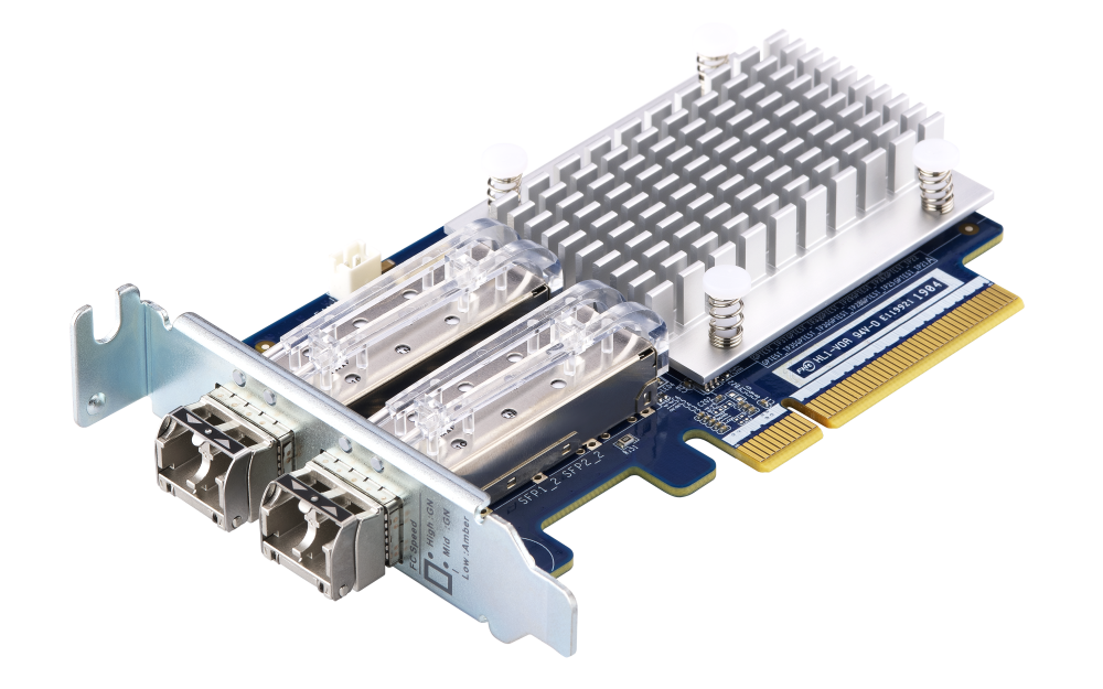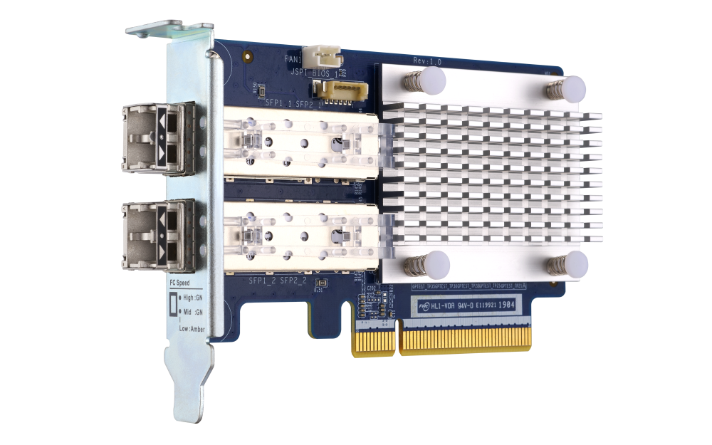 Las redes de área de almacenamiento (SAN) de Canal de fibra común son entornos de red cerrados y sus dispositivos suelen ser caros, aunque les falta flexibilidad para la implementación. QNAP presenta las tarjetas de expansión de Canal de fibra de 16Gb/32Gb y dos puertos que presentan un alto rendimiento, fiabilidad, seguridad y eficiencia energética. Con una tarjeta de Canal de fibra de QNAP en su NAS de QNAP, podrá añadir su NAS a un entorno de red SAN existente a un precio asequible para responder a las necesidades de almacenamiento y copia de seguridad de alto rendimiento.