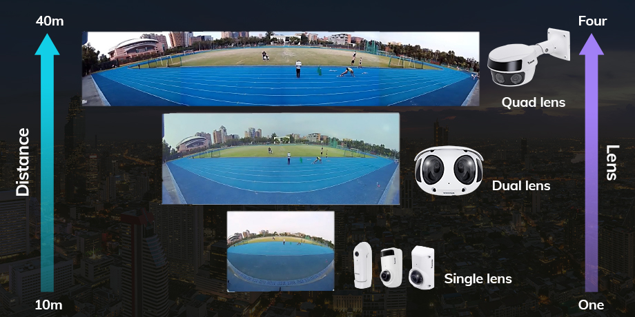 Al igual que hay varios tipos de cámaras domos o bullet adaptadas a diferentes situaciones, el mismo principio se aplica a nuestras soluciones panorámicas de 180° en VIVOTEK. Hemos clasificado nuestras soluciones panorámicas en tres segmentos, cada uno diseñado para adaptarse a distintos entornos y requisitos de cobertura.