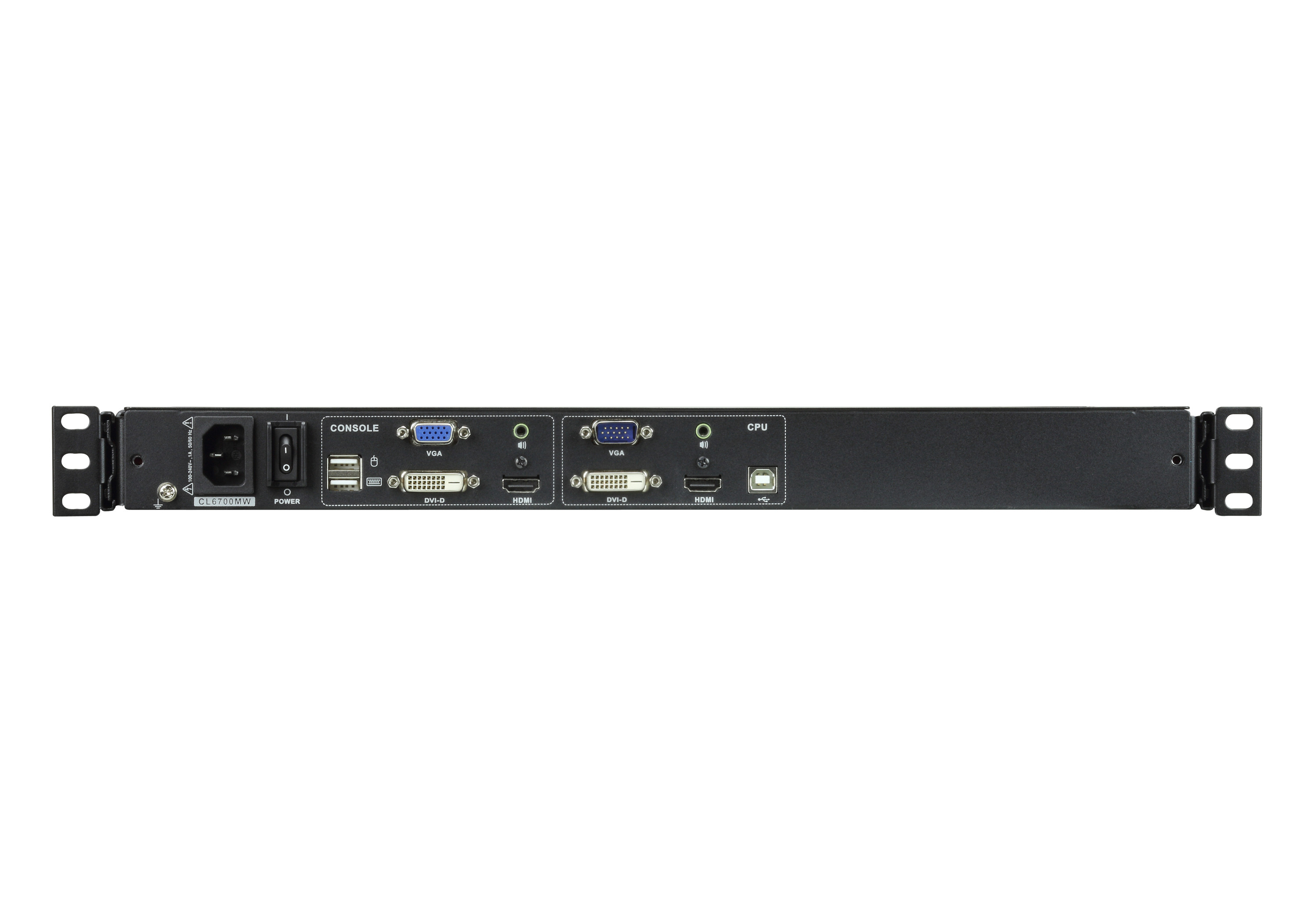 La CL6700 incorpora un panel LCD con retroiluminación LED de 17,3" (CL6700MW) o 19" (CL6700N), un teclado completo y un panel táctil en una carcasa deslizante que puede montarse en un bastidor de 1U. Además, es compatible con audio. La consola KVM LCD CL6700 permite acceso frontal a switches KVM compatibles utilizando el espacio con un módulo que se cierra en plano y se desliza para introducirse en el bastidor.