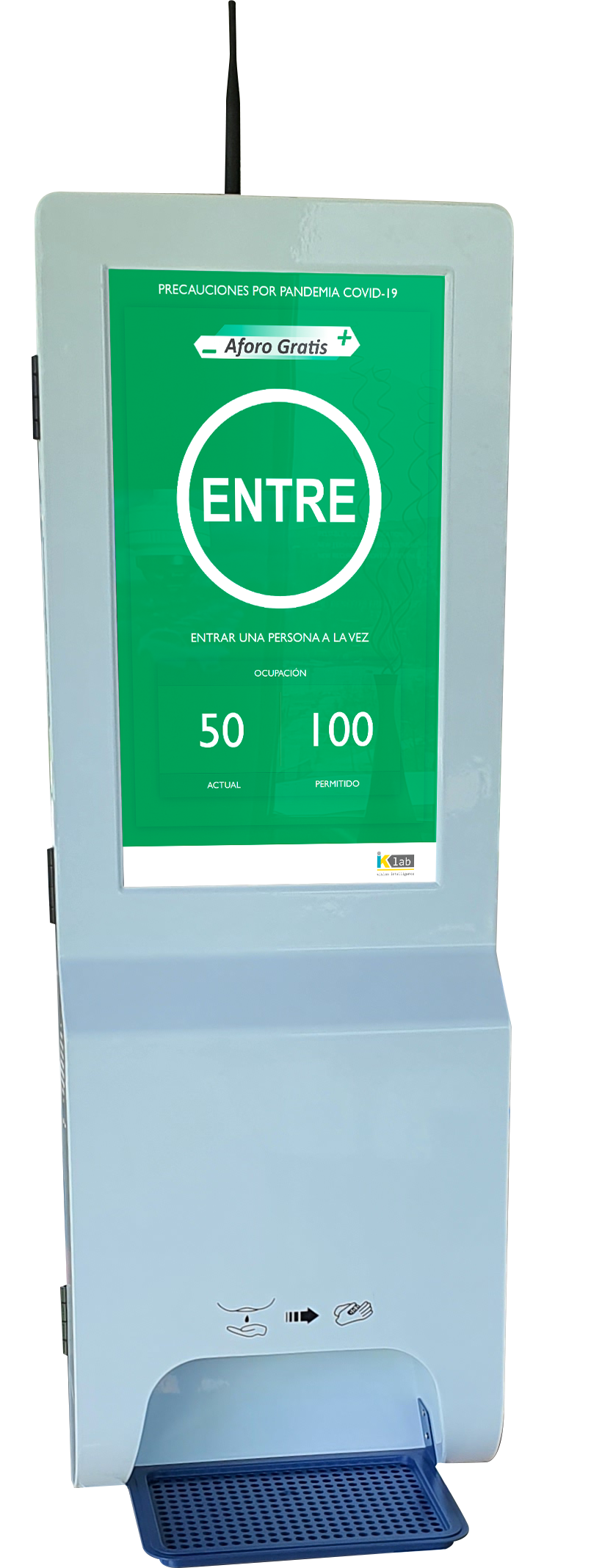 Estación sanitizadora IK-220-4G, es un dispositivo que puede ser usado para cartelería digital, incluye sistema operativo base Android 7.1. Incorpora un dispensador automático sin contacto de alcohol gel con 3000ml de capacidad.
