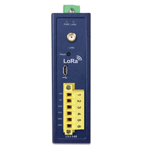PLANET LN1140 es un controlador de nodo LoRa industrial que se utiliza para la adquisición de datos de múltiples sensores. Contiene dos interfaces de entrada digital y dos interfaces de salida digital para simplificar la implementación y el reemplazo de redes LoRaWAN. Se puede utilizar para monitorear y controlar dispositivos integrados como sensores de temperatura, sistemas de control de acceso, sistemas de seguridad y más. Con su diseño industrial y carcasa de metal IP30, el LN1140 se utiliza ampliamente en aplicaciones de interior como industrias inteligentes, automatización de edificios, etc.