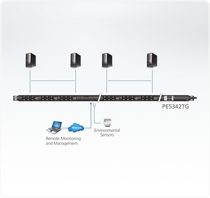 El PDU eco™ PE5342TG de ATEN NRGence es una PDU de factor inteligente de forma delgada que contiene 42 conectores IEC (Comisión Electrotécnica Internacional). Las PDUs de factor ligeras y de forma delgada con un ancho de 5,6 cm encajan firmemente en los bastidores del servidor, proporcionando más espacio en el bastidor para aumentar el flujo de aire y la eficiencia de enfriamiento. Esto también significa un mantenimiento más rápido, gracias a un acceso más fácil a los equipos instalados detrás de las PDU.