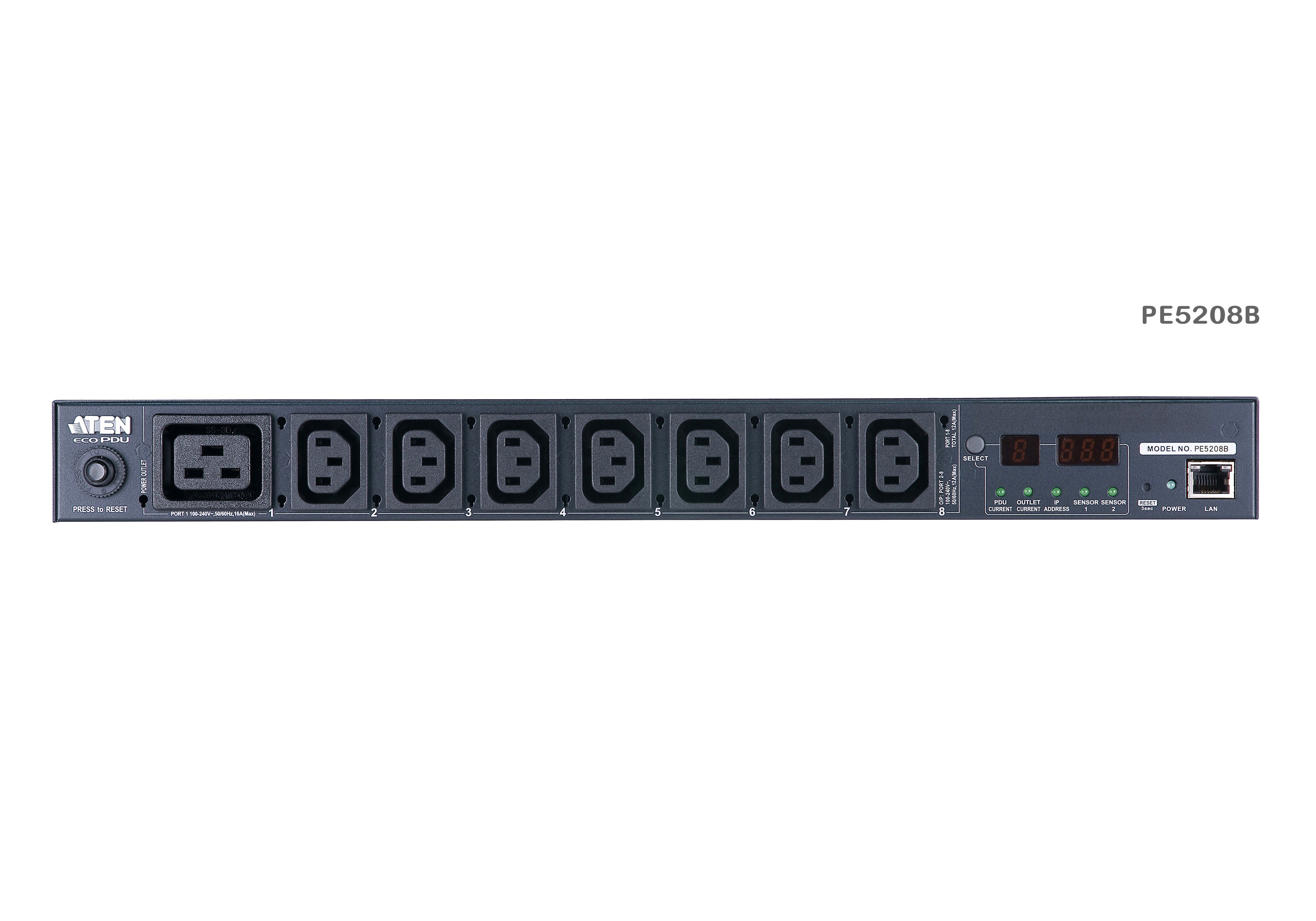 ATEN ha desarrollado una nueva generación de unidades de distribución de energía (PDU) respetuosas con el medio ambiente con el fin de mejorar la eficiencia en el uso energético del centro de procesamiento de datos. Las PDU eco PE5208 son PDU inteligentes que contienen 8 tomas eléctricas de CA, y que están disponibles con diversas configuraciones de enchufe IEC o NEMA. Ofrecen gestión eléctrica segura, centralizada, inteligente de los dispositivos informáticos del centro de procesamiento de datos (servidores, sistemas de almacenamiento, switches KVM, dispositivos de red, dispositivos de datos en serie, etc.), así como la capacidad de supervisar el estado del centro por medio de sensores*.