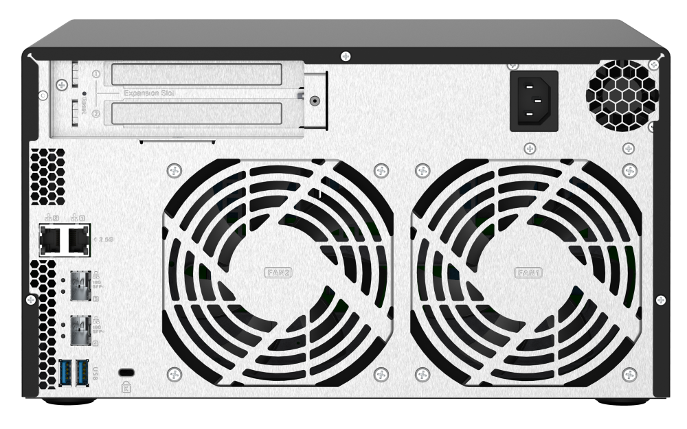 Dos SFP+ 10GbE y dos puertos de red RJ45 2,5GbE permiten realizar tareas que requieren un alto ancho de banda y aceleran el uso compartido de archivos.