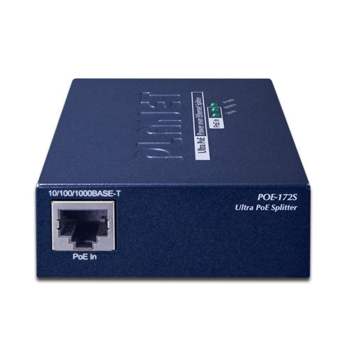 El divisor Gigabit Ultra Power over Ethernet PLANET POE-172S, que cumple con el estándar IEEE 802.3at/af y es compatible con 802.3bt, entrega datos digitales Ethernet y alimentación Ultra PoE a través de cables de par trenzado a dispositivos de red. Separa los datos digitales y la alimentación en tres salidas opcionales (12 V/19 V/24 V CC) y admite una distancia de transmisión de hasta 100 metros.